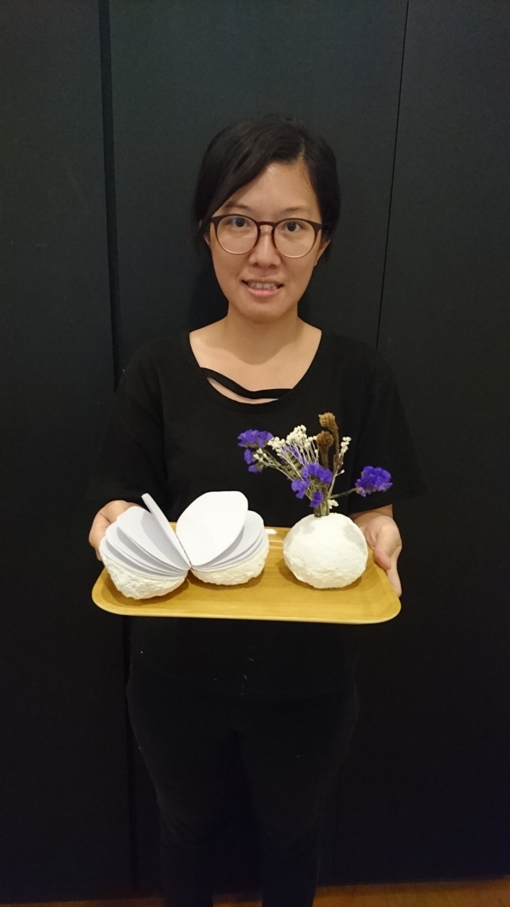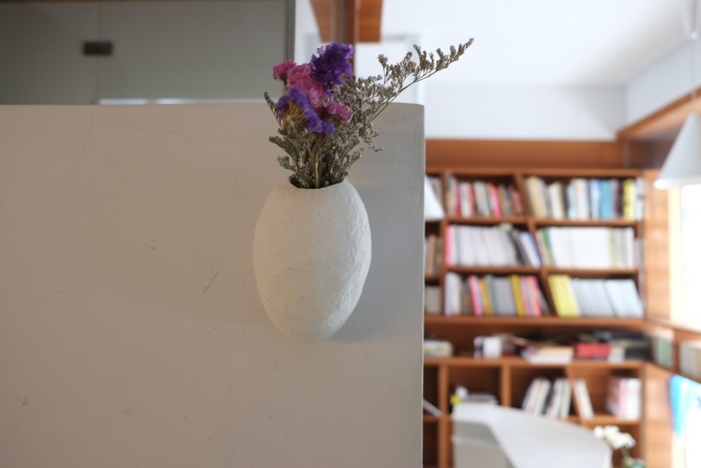 以環境友善為出發,利用珪藻土及紙漿纖維為創作媒材,將工藝創作的概念注入到家飾品的製作中。