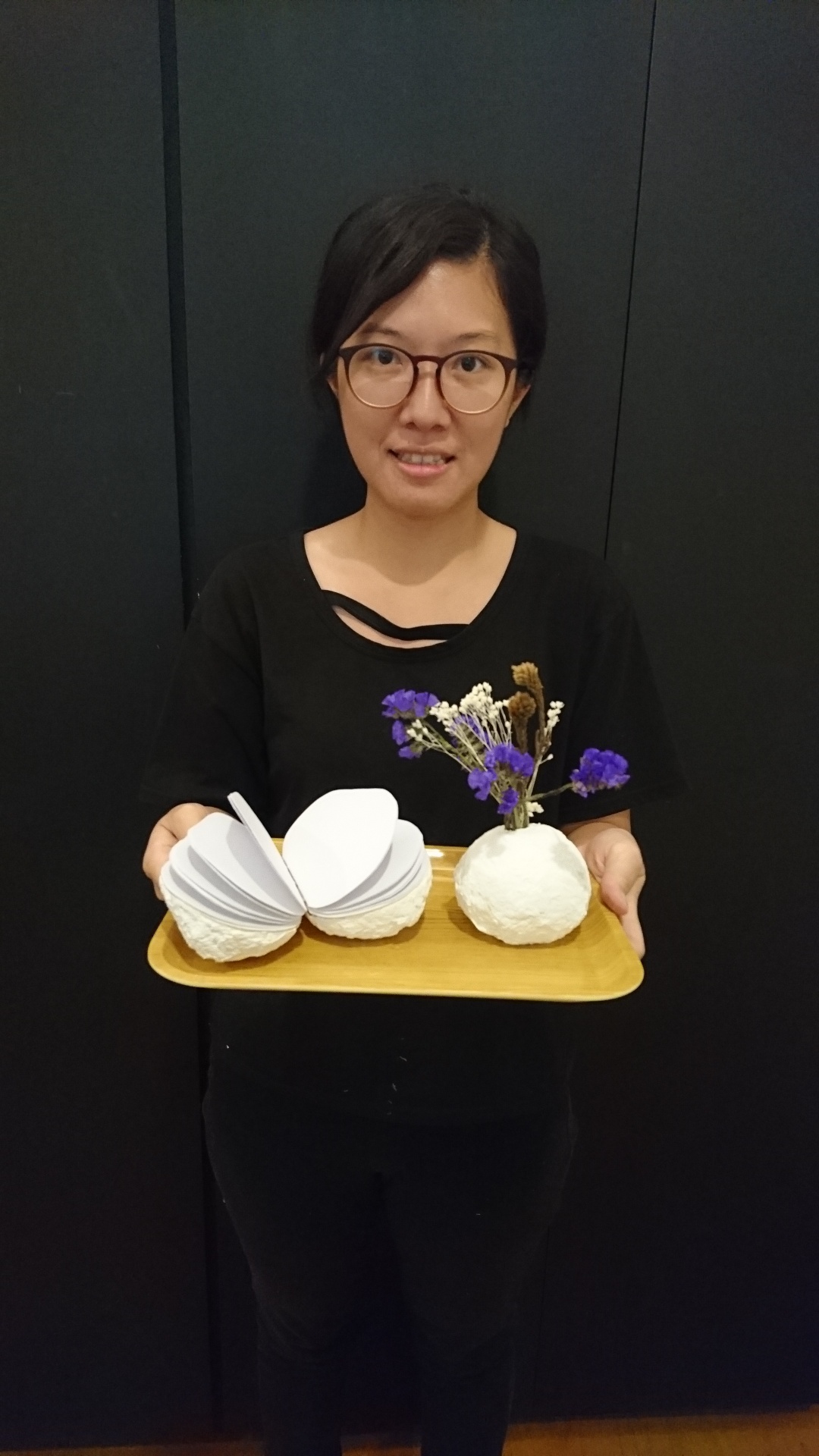 以環境友善為出發,利用珪藻土及紙漿纖維為創作媒材,將工藝創作的概念注入到家飾品的製作中。